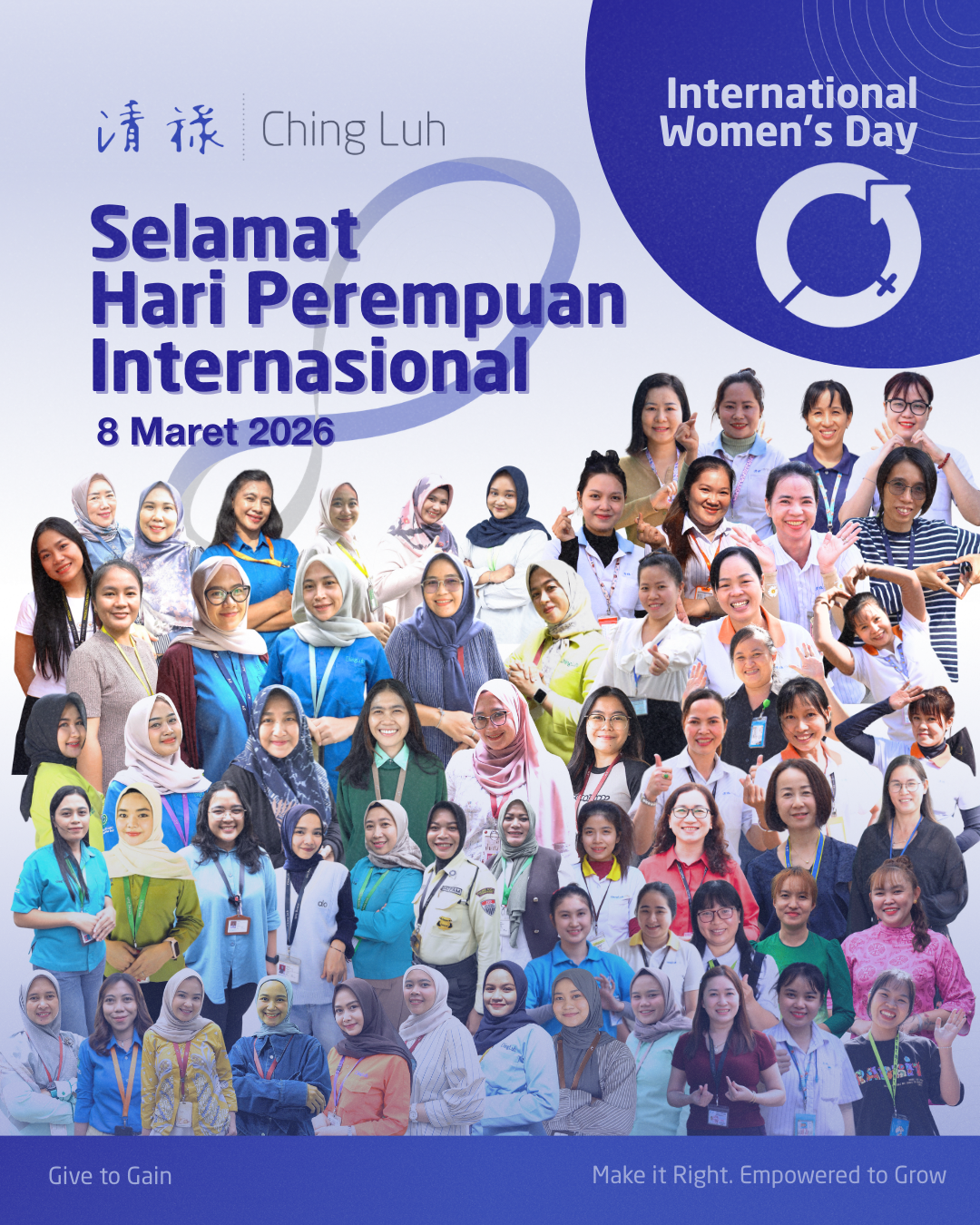 Di Hari Perempuan Internasional ini, mari bersatu membangun lingkungan di mana setiap orang dapat bertumbuh dengan penuh percaya diri dengan saling mendukung, untuk tumbuh bersama.